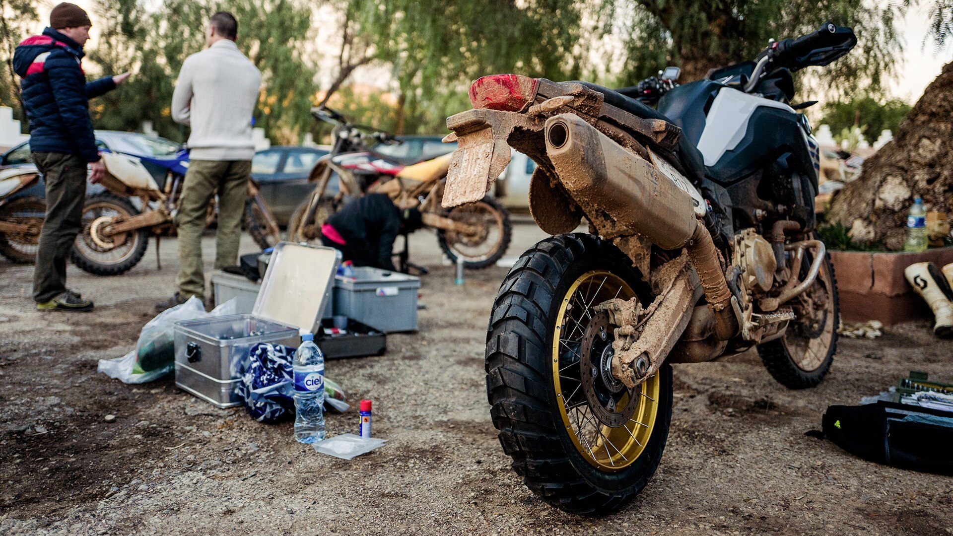 Rain, wind, wet equipment, bivouac – the first day ends in exciting fashion for Dirk. "But I got the shivers in the evening." During the night, the temperature drops to around five degrees, with the wind chilling him right down to the bone. Despite a hat, down jacket, pullover, socks, long trousers and sleeping bag, his whole body shivers. "I gritted my teeth, pushed my limits and prayed it would get warmer. This was a very intensive experience for me." After the night outdoors, Dirk and the other enduro participants return to the rocks. In the meantime, the subsoil has become softer. Dirk is calm enough to plunge ahead through the deep mud. "I got used to it, applied the motorcycle accordingly or rode it tactically intelligently."