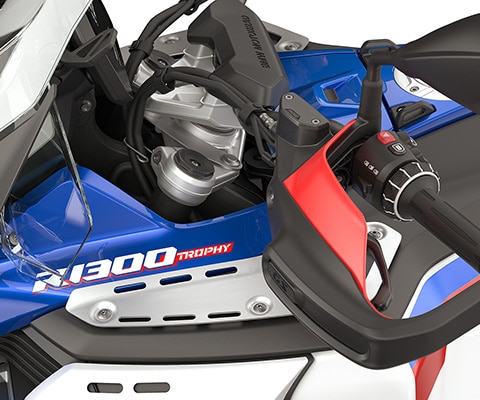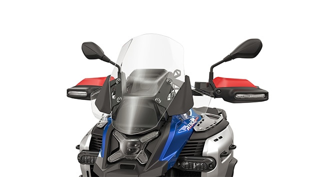 The tinted wind deflectors are easy to install and effectively protect your hands against wind and weather. Their aesthetic emphasises the bike’s sporty character.