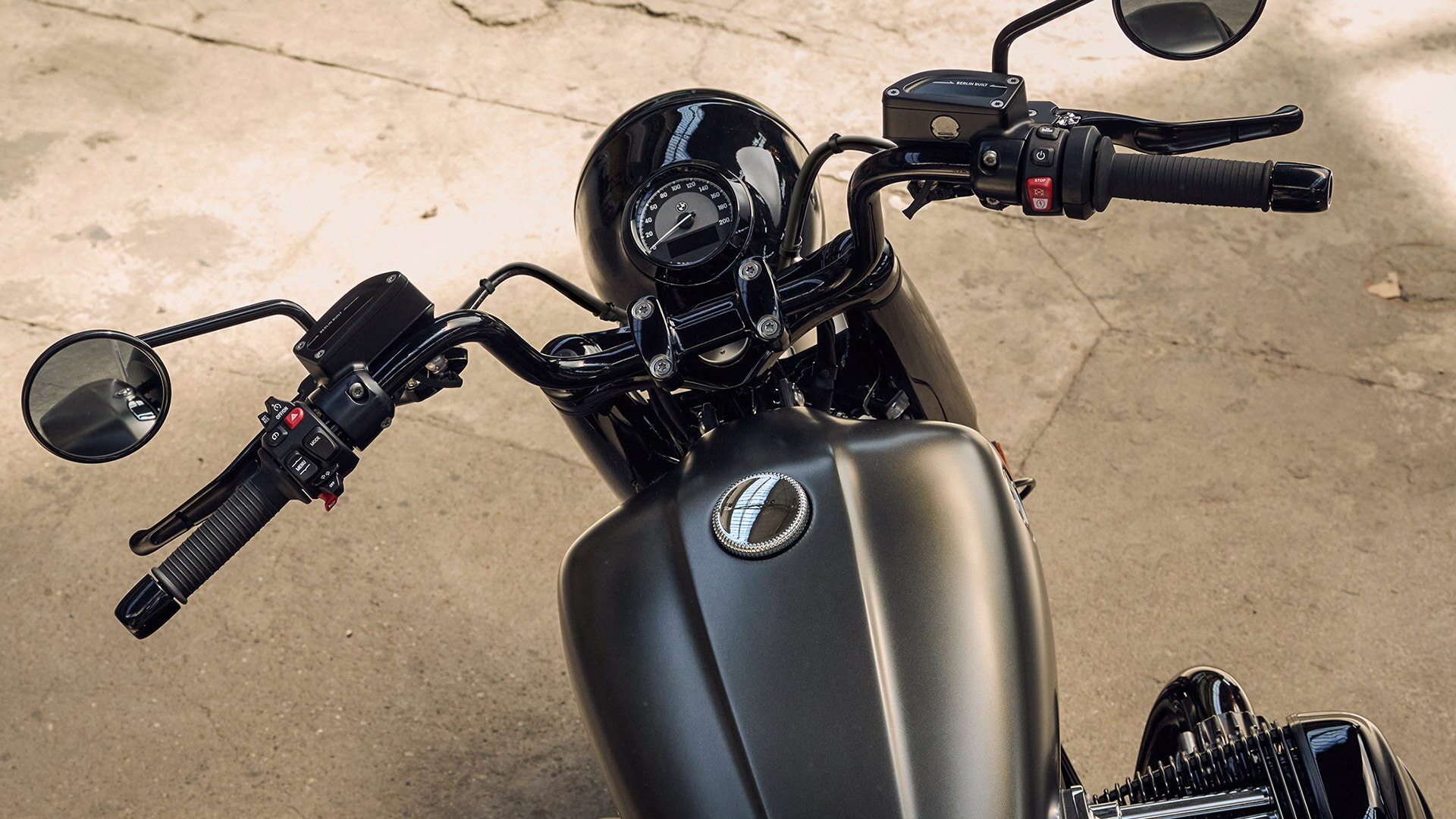 The iconic front with round LED headlight and 21-inch cast aluminium wheel leads the way towards the horizon. You are casually gripping the mini ape-hanger and resting your feet on the standard footboards, while the dragster seat gives you perfect support on long tours. The elongated bagger outline flows straight to the stylish rear end featuring hard-shell cases. This bike is an eye-catcher. Unmistakable: the unique boxer sound from the striking, dark chrome rear silencer.