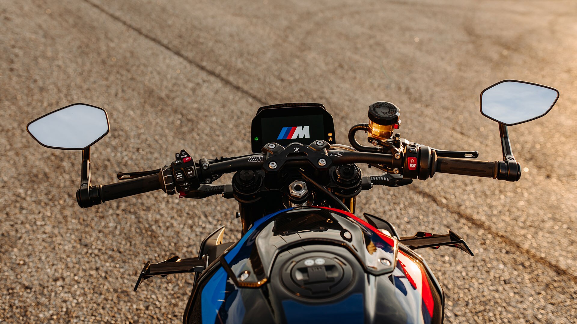 Perfection is in the details. M winglets generate aerodynamic downforce to prevent high flyers from taking off. At a speed of 220 km/h, they increase the front-wheel load by 11 kg. Your benefit: maximum riding stability, a lower tendency for the front wheel to lift off the road surface as well as the possibility to brake later and accelerate earlier when cornering.